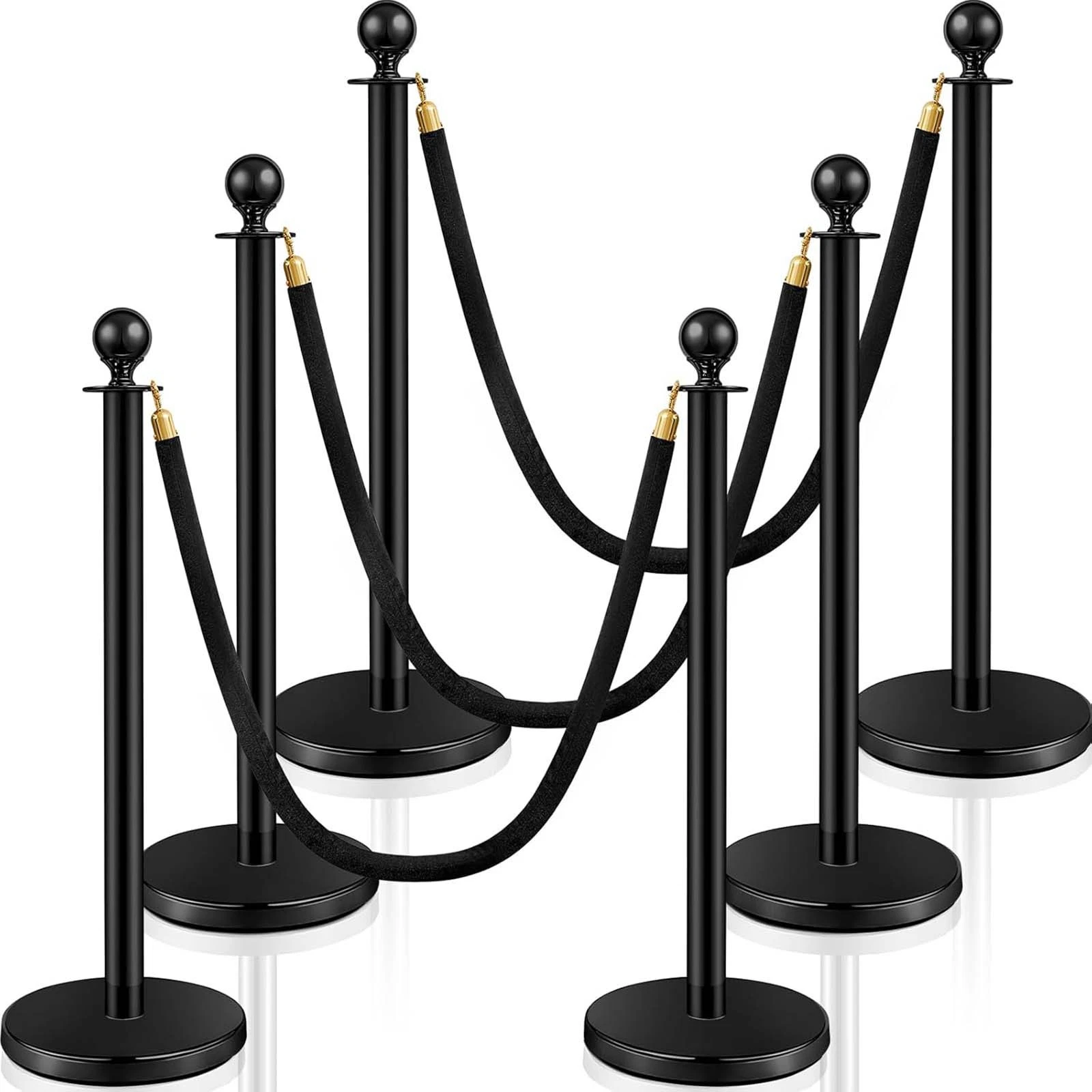 6 black posts +4 black Rope, 6 Gold posts +4 gold Rope, 3 black posts +2 black Rope, 3 Gold posts +3 gold Rope, 2 Black posts, 2 Gold posts, 1 Black Rope, 1 Red Rope