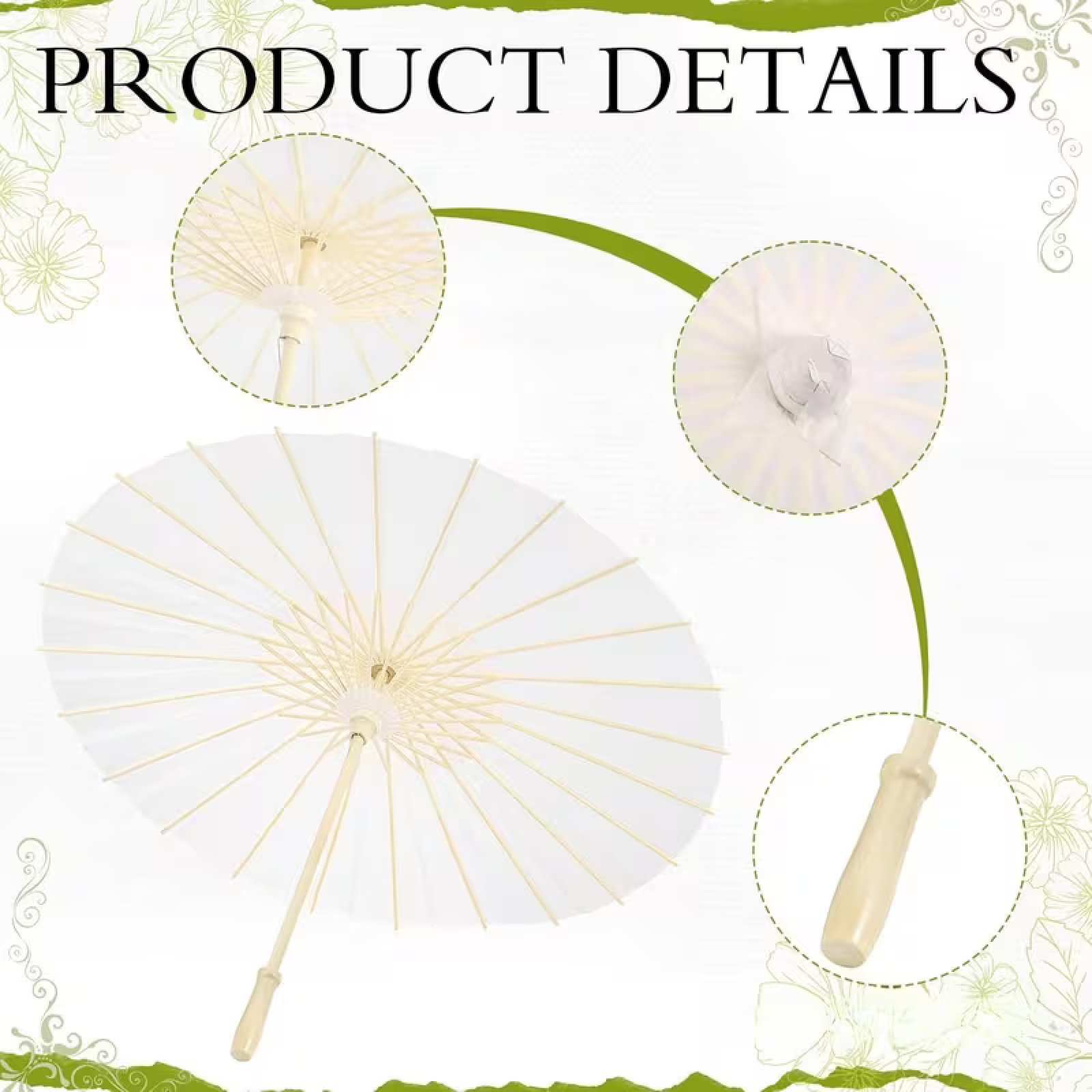 The umbrella canopy is made of paper, giving a vintage look.
