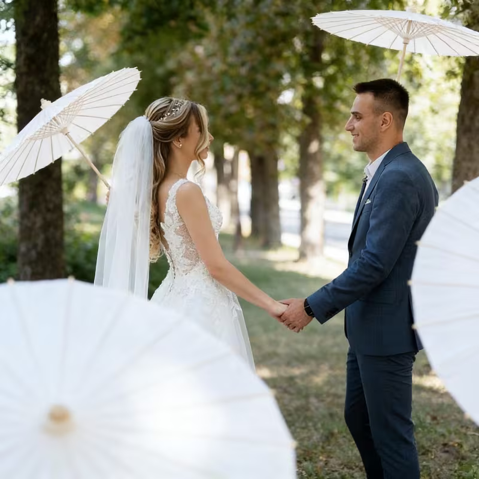 With pure white color, the umbrella looks romantic and elegance, and empty umbrella canopy allows DIY hand painting.